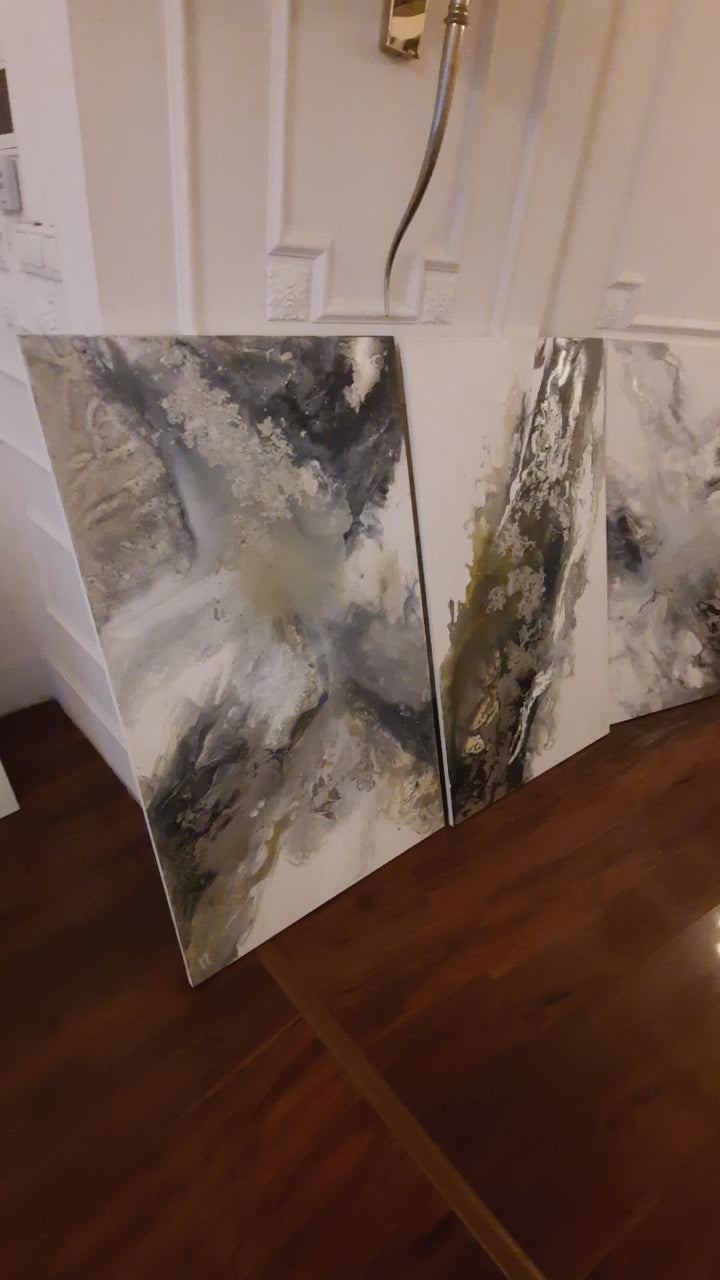 - Texturált felületű, kézzel készített akril festmény ezüst metál részletekkel
